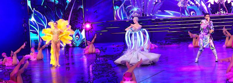 Einen großen Stellenwert in einem solchen Varieté-Programm hat das Kostümdesign. Dafür sorgt der amerikanische Stardesigner Jeremy Scott, der für die Show alle 500 (!) Kostüme entworfen hat in einer Mischung aus Haute Couture und Popkultur. Die Partnerschaft des Palastes mit dem Weltunternehmen Swarovski setzt der Stardesigner in den aufwendig gefertigten Kostümen für die ikonische Kickline fort. Hier werden über vier Millionen funkelnde Swarovski-Kristalle eingesetzt und verleihen der Inszenierung einen glamourösen Anblick.