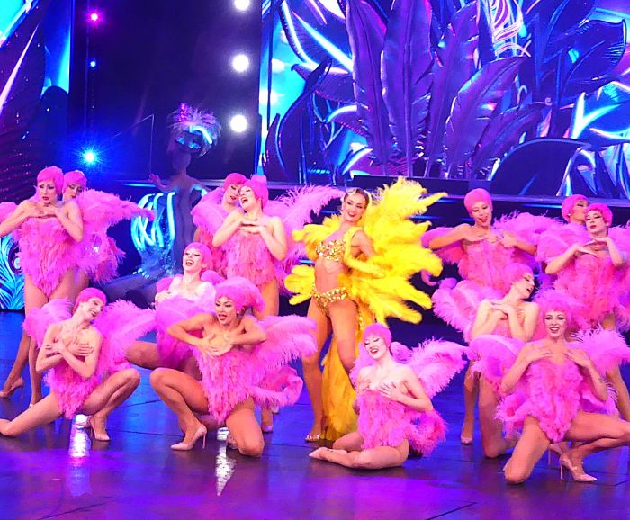 Sie alle, die Hauptdarsteller, gehen auf eine Reise in die Welt der Träume und des Glücks, aber nicht allein. Insgesamt erlebt der Zuschauer den Auftritt von über einhundert(!) Tänzern und Artisten auf der Bühne. Da ist zuallererst die erstklassige internationale Ballett-Compagnie mit 60 Künstlern aus 28 verschiedenen Nationen – auch das weltweit einzigartig. Das berühmte traditionelles Markenzeichen ist die Girl-Reihe, in der sich in der heutigen Show 32 Tänzerinnen und Tänzer perfekt synchron bewegen. Seit dem Jahr 2023 dürfen hier alle Geschlechter mittanzen, die die tänzerischen Herausforderungen erfüllen und das Aushängeschild des Palastes trägt nunmehr den Namen „Kickline“. Ballettdirektorin Alexandra Georgieva sorgt mit der Choreografie der „längsten Kickline der Welt“ wiederholt für Gänsehautmomente bei den Zuschauern.