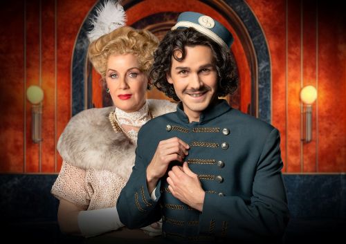 Theaterplakat „Bekenntnisse des Hochstaplers Felix Krull“ mit Adrian Djokic und Alexa Maria Surholt © DERDEHMEL/Urbschat