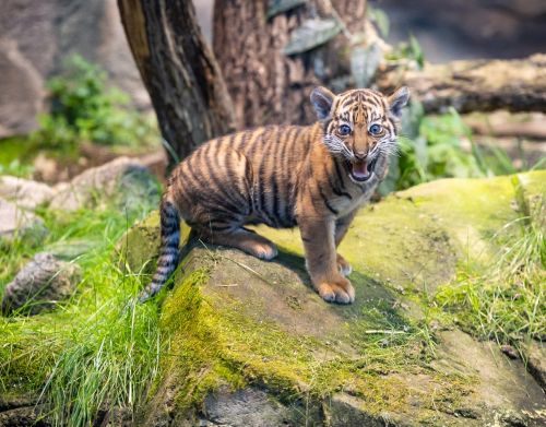 Bei der feierlichen Namensverkündung im Regenwaldhaus waren neben der Patin, der Bezirksstadträtin von Lichtenberg, auch Vertreter der indonesischen Botschaft zugegen, um diesen besonderen Moment mitzuerleben. „Sumatra-Tiger gelten als die seltensten Großkatzen der Welt. Durch Lebensraumverlust und menschliche Eingriffe ist ihre Population in der Wildnis auf nur noch etwa 400 bis 600 Tiere geschrumpft“, erklärt Zoo- und Tierparkdirektor Dr. Andreas Knieriem. „Mayang und Lilly sind bereits für die Gäste des Tierparks zu sehen. Auch wenn Mutter und Jungtier weiterhin viel Zeit für Zweisamkeit benötigen, werden die Erkundungsausflüge ins Innengehege inzwischen immer häufiger.“ Bei Sumatra-Tigern liegt die Aufzucht der Jungtiere vollständig in der Verantwortung der Mutter.