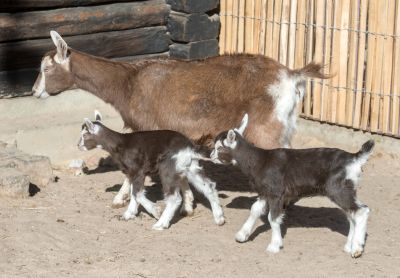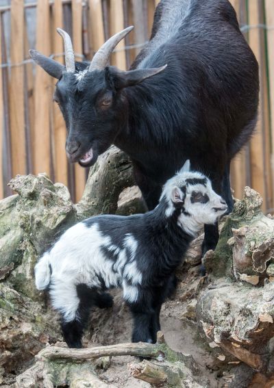 Auch im Streichelzoo ist viel los: Die Zicklein der Thüringer Waldziegen tollen durch ihr Gehege und bei den imposanten Gaur stellt das süße Jungtier mit seinen aufgeweckten Sprüngen selbst den Osterhasen in den Schatten.